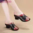 GKTINOO 2019 Summer Shoes Fashion Women Slippers Female Hollow Out Women Genuine Leather Sandals Med Heels Shoes zapatos mujer