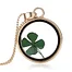 Handmade Natural Real Dried Flower Lucky Four Leaf Clover Resin Round Glass 35MM Locket Pendant Necklace For Women Jewelry